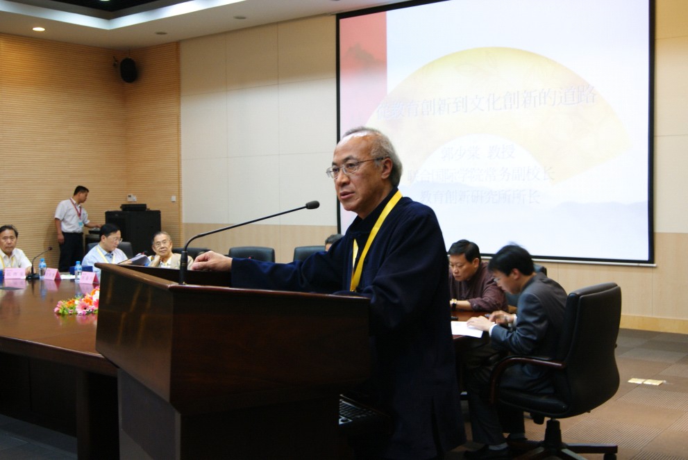 常务副校长郭少棠教授在开幕式上首先发表主题演讲。郭教授指出,在当前国家和珠江三角洲地区教育发展中长期规划纲领相继出台的情况下,反思过去百年来中国教育发展的历程以及当前中国教育发展的成果显得尤为重要。他说,国家教育发展规划中积极吸收中外、中港合作办学经验,确定未来教育改革的方向、方针和战略目标的举动值得肯定,这对于中国教育体制的改革走"依法治教","育人为本"的路线,积极跟上世界教育改革的潮流是有着重大意义的。郭教授以最近发生在全国各地的危害幼儿生命安全的犯罪案件等新闻为例,直言教改纲领中还需要面对的问题,认为现有教育制度中的思想文化教育,尤其是伦理道德教育的不足造成了诸如社会价值观扭曲,基本伦理道德被忽视等严重的问题。郭教授坦言,如果这些问题得不到有效地解决,就无法实现真正意义上的素质教育,促进人的全面发展。郭教授强调,教育应该以文化为根,生命为本。他希望与会学者广泛探讨,以重视民族文化观念为基础,让中国的教育改革事业为国家和民族的发展做出应有的贡献。