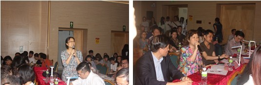 (梁伟贤教授和邱志勇教授分别为“UIC影帝”和“UIC影后”颁发奖杯)