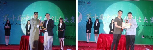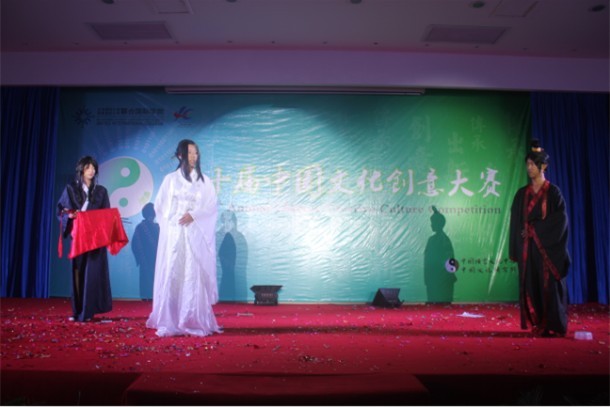 紧张的统计分数之后,第十届中国文化创意大赛表演类比赛结果揭晓。《武松打虎》捧得冠军,《进城记》和《茶馆》分获亚军和季军,《召唤》、《以何抱怨》与《说剑》获得优秀奖。在《武松打虎》中扮演父亲“杨半疯”的左浩男同学摘得“影帝”(最佳男演员)桂冠,而“影后”(最佳女演员)称号则授予了在《进城记》中反串父亲“老头子”表演出色的王方怡同学。