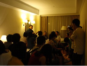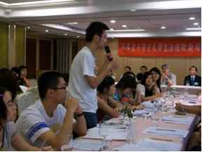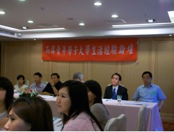 抵达台北的第二天下午,在我们入住的康华大饭店会议厅,举办了"两岸青年学子大学生活经验论坛"。来自全台十多所大学的几十名大学生与24UIC学生一起交流大学生活,分享了彼此的生活经验与学习心得。大家对共同感兴趣的校园生活与学习问题,展开了激烈讨论。论坛结束后,全体学生一起自助晚餐,自由交流,两岸学子相处非常融洽。