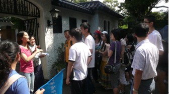 钱穆先生的故居位于东吴大学旁的一座小山上,清幽典雅,乃读书治学的上佳之所。于UIC学子,更是有着寻源溯流的意义--郭少棠校长曾受业于钱先生,故UIC现今所秉承的教育理念,与钱先生的教育思想颇多相合之处,延续与发扬自由独立之教育、传承中华文化之精神。其中的楼廊,悬挂有钱先生之往事生平与治学过程的文献资料,以激励后学。龚鹏程教授、东吴大学历史系教授、钱穆故居管理处执行长黄兆强教授也现场为同学们作细致的讲解。尽头处有一望月台,据传当年,钱先生与夫人便常在此处望月怀远,临楼听风。凭栏而望,追念先生昔日之风采,亦良多感怀。