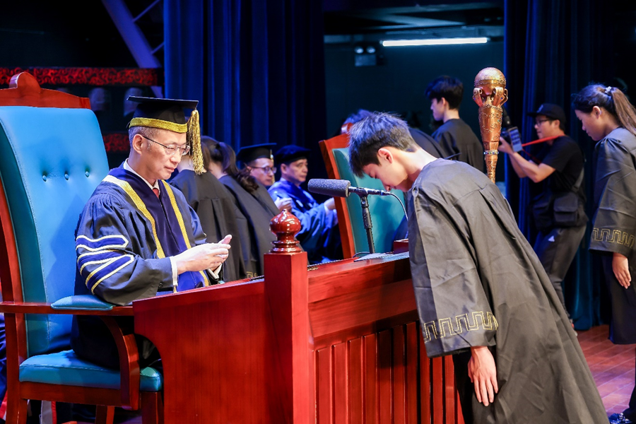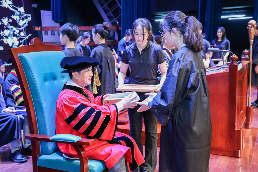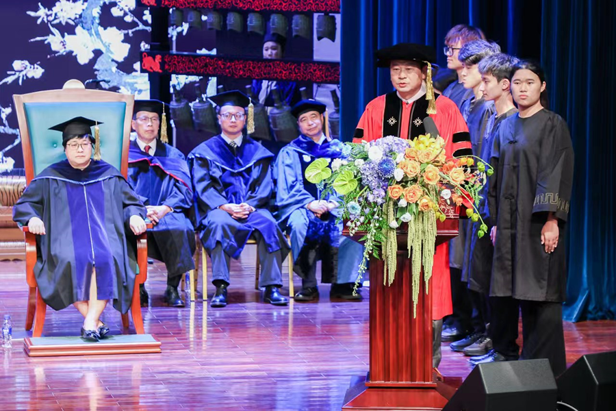 在学子聆训环节,UIC校长陈致教授在致辞中说,他希望学生能重视礼仪,汲取优秀的中华传统文化,延续尊师重道的美德。希望同学们不仅在今天的“敬师礼”上表达对老师的敬意,也能在日常的学习生活中通过行动体现对知识的渴求与对老师的尊重。