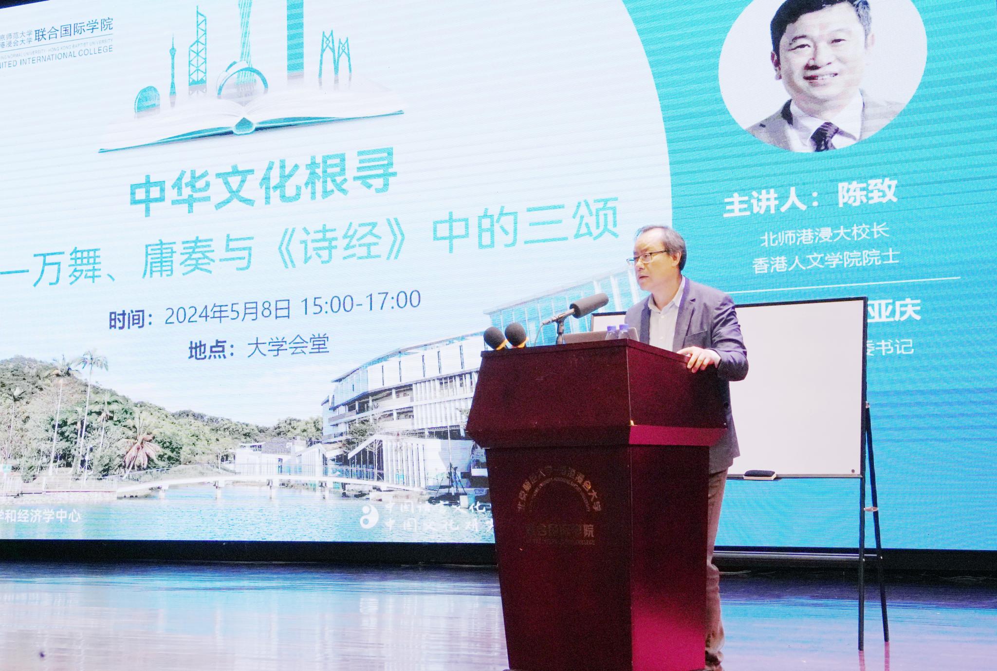 2024年5月8日下午,我们有幸邀请到北师港浸大校长、香港人文学院院士陈致教授给我们带来了题为 “中华文化根寻:《诗经》与商周礼乐文化”的讲座。陈教授是中国古典文学及汉学研究学者,主要从事《诗经》、金文以及明清学术史方面的研究。本次讲座由北师港浸大党委书记、副校长毛亚庆教授主持。