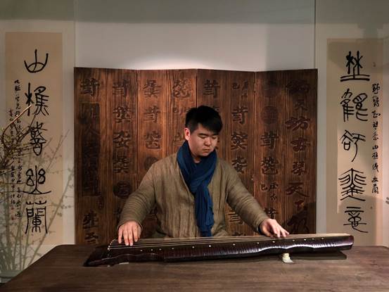(王修志同学参加UIC寒假古琴琴旅,体验弹奏唐琴大雅)