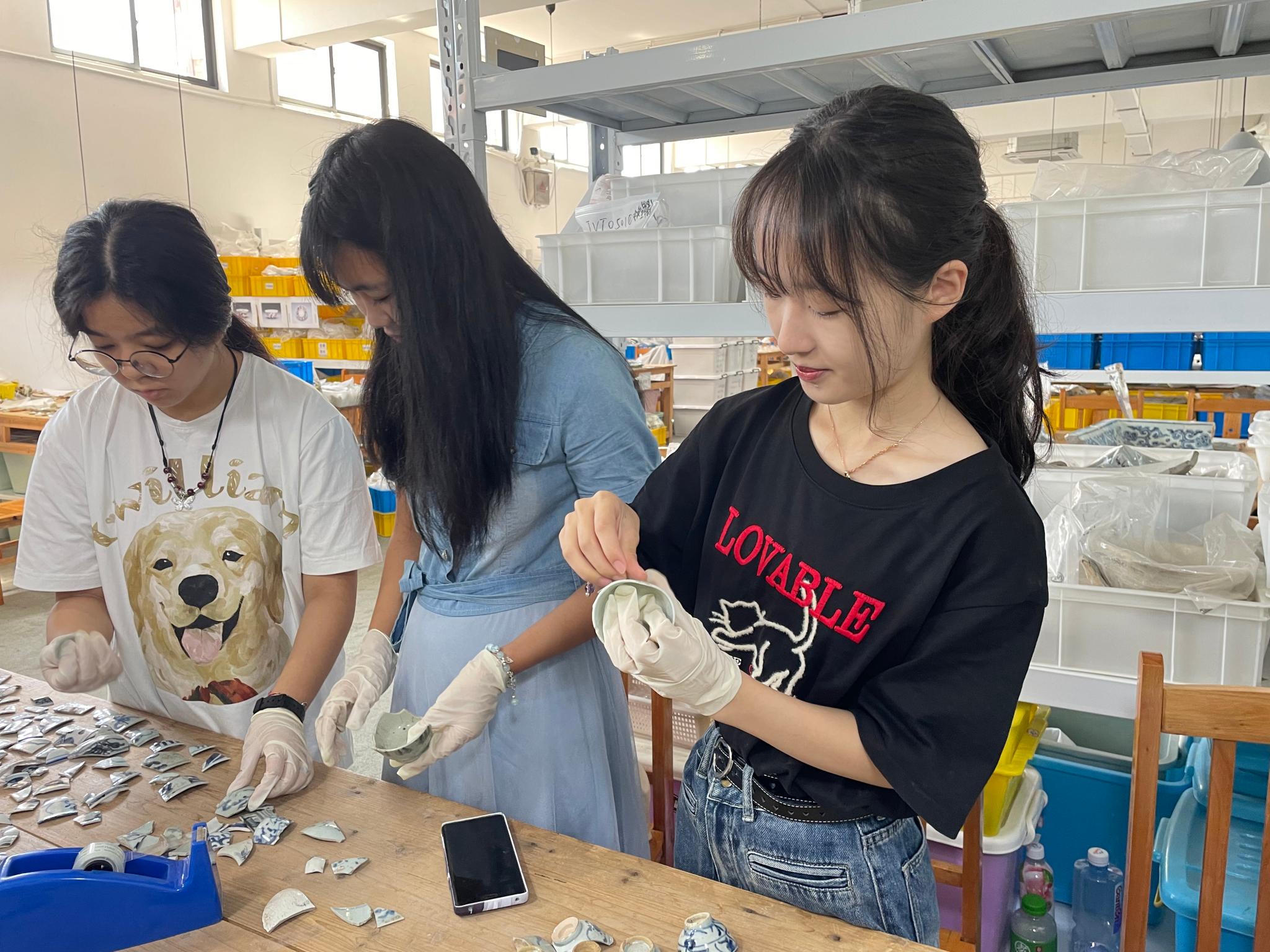 学生在景德镇陶瓷艺术研学项目学习古瓷器整理