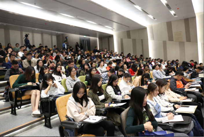 在UIC,说起国情国学教学研讨会,你首先会想到什么呢?是来自海内外知名学者的风采,是精辟独到的演讲内容,还是大家纷纷提问的交流环节?当然,少不了B101冯燊均演讲厅济济一堂听讲座的情景。2017年秋天,UIC师生整体迁入金同路2000号的新校园,开始了一段新的旅程。2017年12月2-3日,第二十届国情国学研讨会首次在新校园举行。在可以容纳三百人的七号演讲厅里,依旧是座无虚席,一幅孜孜求知的画面。转播的六号演讲厅里,也有不少同学聆听演讲。