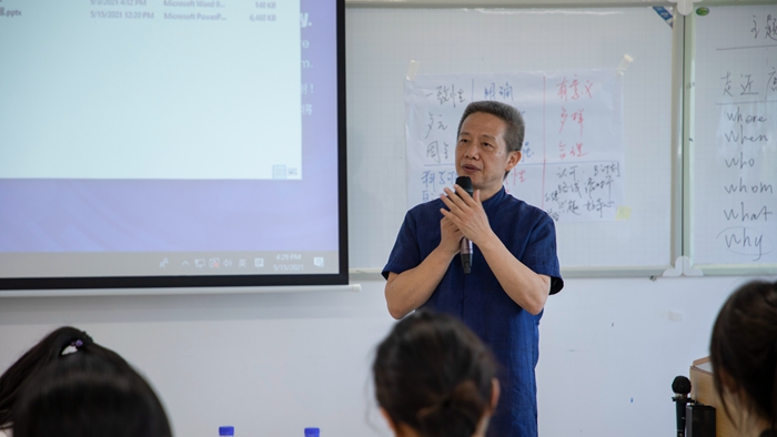 15日,“梦想教师”们在珠海四于书院院长王韦华交流。王韦华院长以《行走在路上的课程》为题,将自己对文化研学课程案例的解读及思考分享给大家。