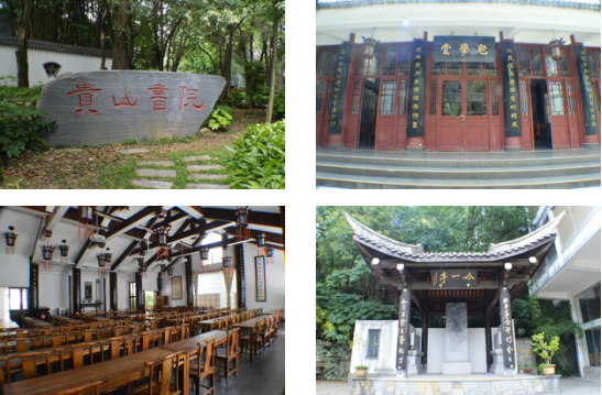 在书院大门外,调研团参观了孔子铜像和贵山书院碑刻,对中华优秀传统文化及贵州地域文化进行了解。贵州大学的前身是贵山书院。贵山书院原名阳明书院,是明嘉靖十四年为纪念王阳明贵阳讲学所建。在勉学堂内,张成霞院长回忆了2011年时任国家副主席习近平同志莅临中国文化书院并为同学们发表长达二十多分钟讲话的往事,感受国家领导人对优秀传统文化传承的殷殷嘱托。随后,张院长又带领调研团参观了游艺轩、励道楼及合一亭,介绍了阳明文化石刻及其中蕴含的“天人合一”、“知行合一”等思想内涵。