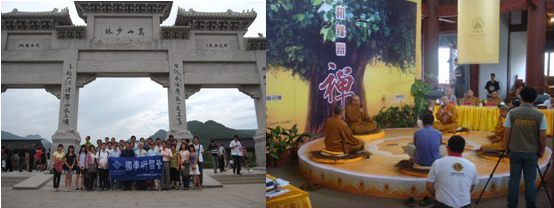 嵩山少林,无论是达摩东渡的故事,还是金庸笔下的武林圣地,都使人充满期待。15日,在老师们的带领下,我们得幸参观了正在少林寺举办的一年一度的“机锋辩禅”,了解了本次“少林问禅”的内容与流程。开始之前所有人都双手合十,先诵念心经,为泥石流灾区祈福,再开始正式的辩论:由六人团坐,其中一人就辩题主讲,尔后其余五人一一对其问难。参观完辩论,少林武术总教练延庄法师为国学营师生介绍了少林武术的特点与禅武的关系,还亲自演示了一套少林柔拳,法师渊停岳峙之气度,于举手投足间展露无疑。随后一行参观少林塔林,当真群塔林立,每座塔之大小形制都有区别,其形制与年代相关,而规模则与其生前之贡献与死后弟子成就有关。