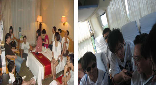 沈享民教授在酒店讲程朱理学 杜洁祥教授在大巴车上讲行销艺术