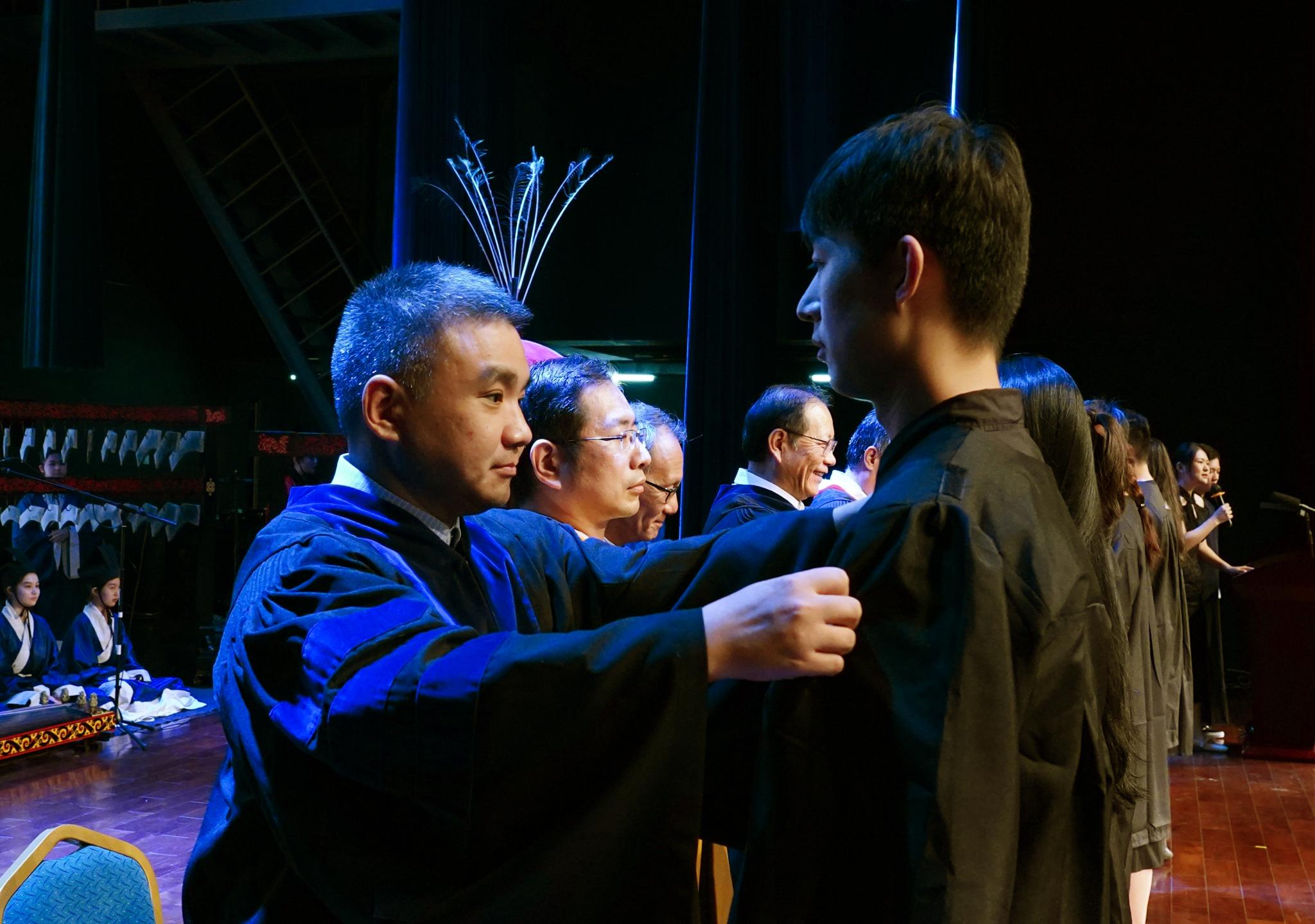 为传承和发扬中国传统文化,9月28日,北师港浸大(UIC)第九届 “大学敬师礼”在演艺厅举行。此次敬师礼承续了传统拜师礼仪的精华,又结合时代特点,让UIC师生体会古代仪式的庄严隆重,亦于仪式中窥见礼乐之堂奥。