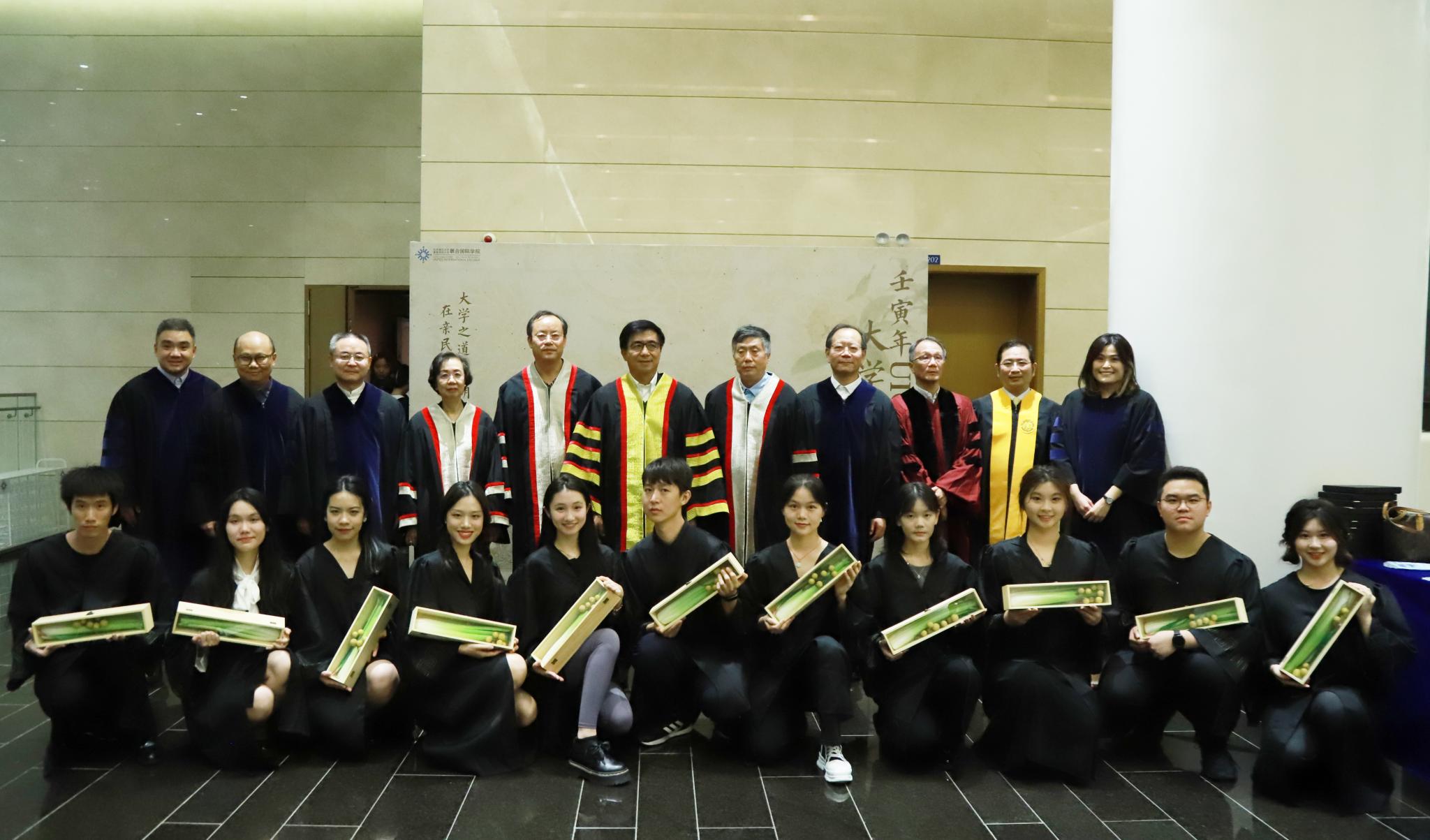 出席此次敬师礼的师长还有:党委书记、副校长毛亚庆教授,副校长(研究和拓展)、研究生院院长贾维嘉教授,协理副校长(学生发展)、通识教育学院署理院长左龙佩兰教授,理工科技学院院长潘建新教授,人文社科学学院署理院长韩子奇教授,通识教育学院副院长、英语语言中心署理主任郭海鹏教授,通识教育学院中国语言文化中心主任陈家宁博士,教师教学发展中心主任郭奕龙博士,文化与创意学院助理教授梁海勇等。