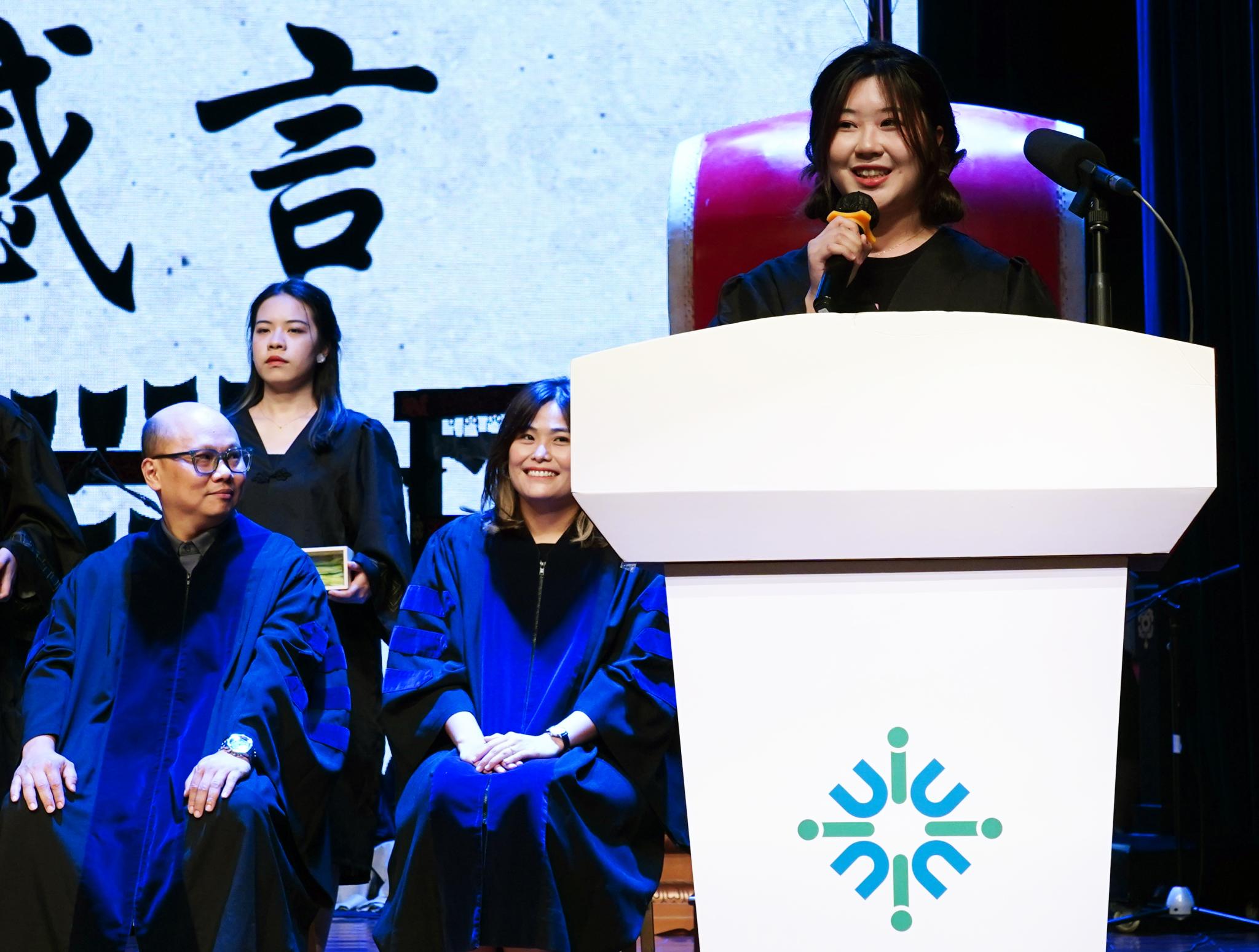 22级新闻与传播学类的新生周小米作为参礼学子代表发表感言。她感恩老师们的谆谆教诲和悉心指导,尤其想感谢自己通识课程的老师——林彩丽博士。林彩丽博士不仅在学业上帮助她,也让她学会如何与自己对话,与世界沟通。周小米也感谢UIC的老师们教会大家永远保持热爱,成为聆听世界,收藏浪漫的“青春冒险家
