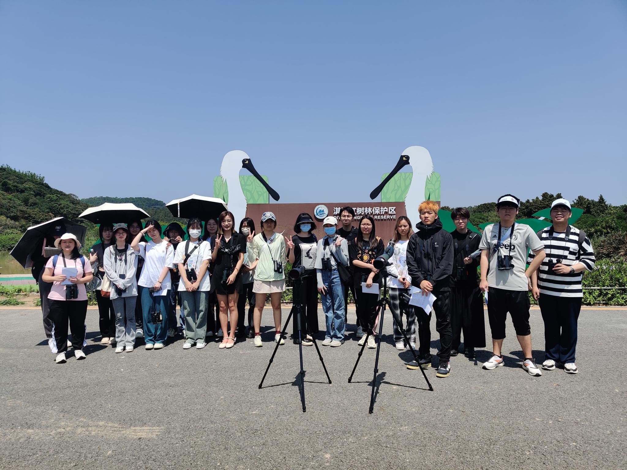杨彧(右一)参加观鸟活动